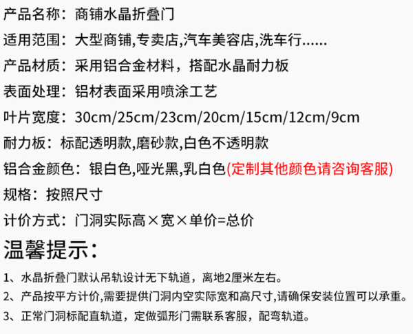 这款商铺水晶折叠门优点是坚固防盗透视清晰可视96%